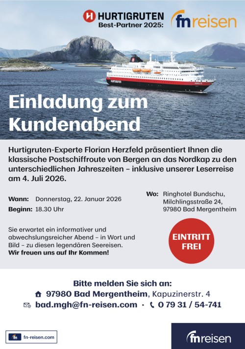 ➤ FN-Reisebüros – Ausgezeichnet als „Best Partner 2025“ von Hurtigruten